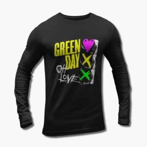 Green Day Band Long Sleeve T-Shirt, Green Day Oh Love Artwork Black Longsleeve Tee Shirt, Alternative Rock Merchandise