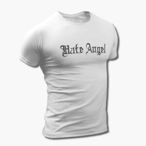 Hate Angel Band T-Shirt, Hate Angel Logo White Tee Shirt, Blackened Thrash Metal Merchandise
