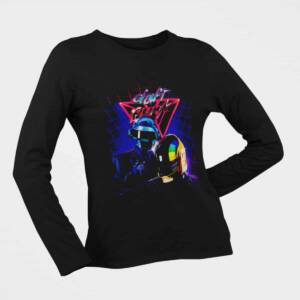Daft Punk Long Sleeve T-Shirt, Daft Punk Artwork Black Longsleeve T-Shirt, Electronic Rock Merchandise