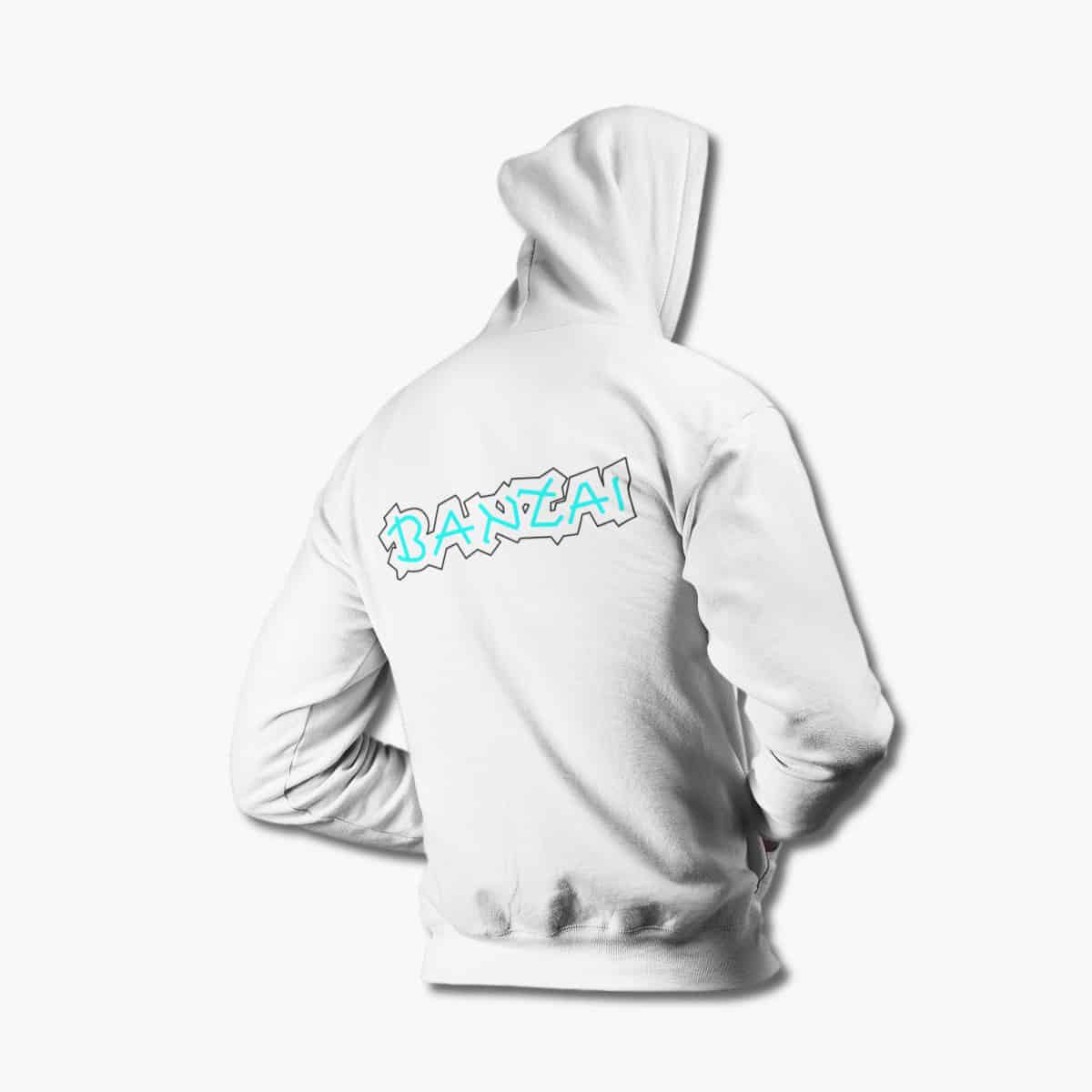 Banzai Zip Hoodie, Banzai Logo White Zipper Hoodie