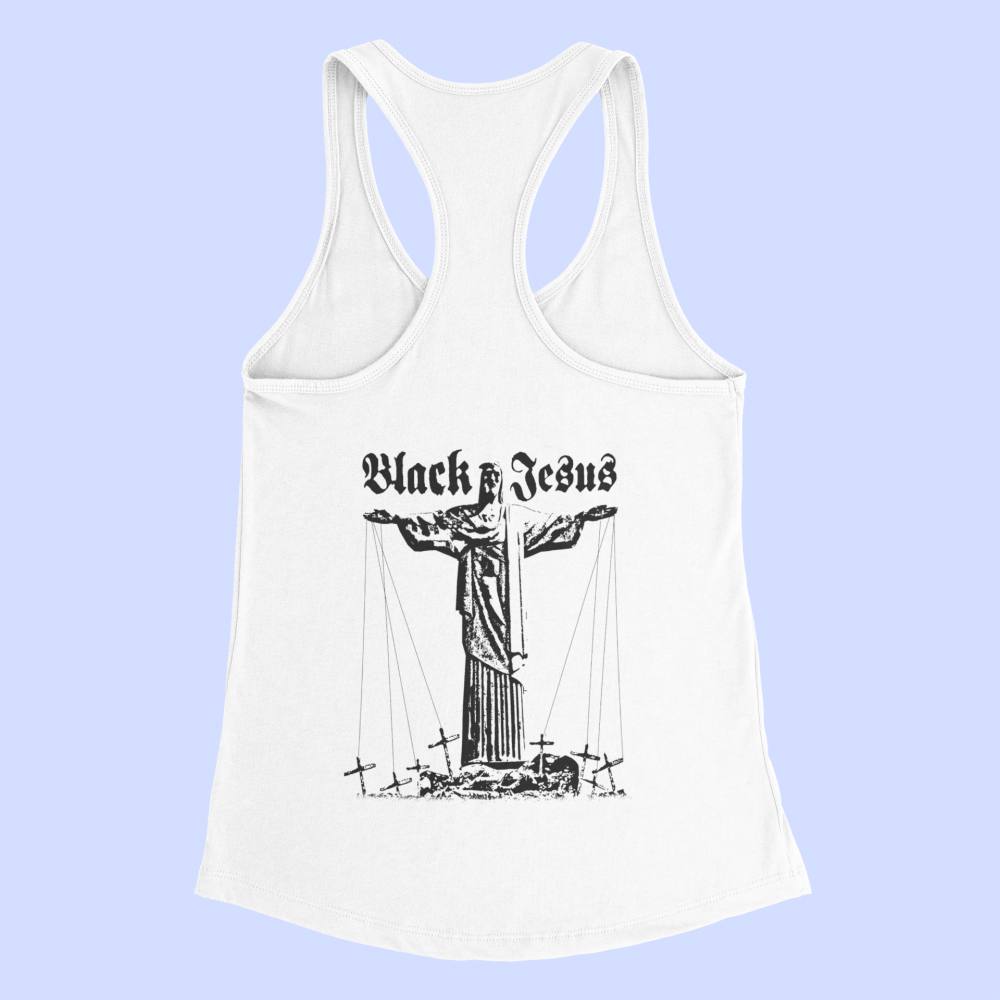 Black Jesus Tank Top, Black Jesus Malevolence Rising White Tank Top Shirt, Death Metal Merchandise
