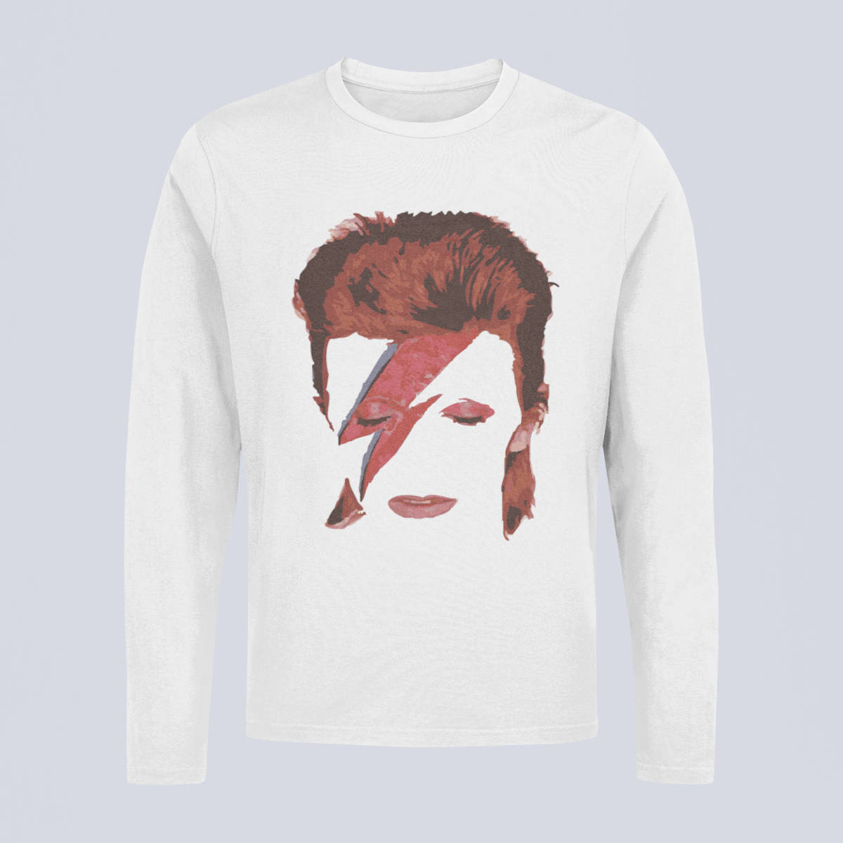 David Bowie Longsleeve T-Shirt, David Bowie Artwork White Long Sleeve, Electronic Rock Merchandise