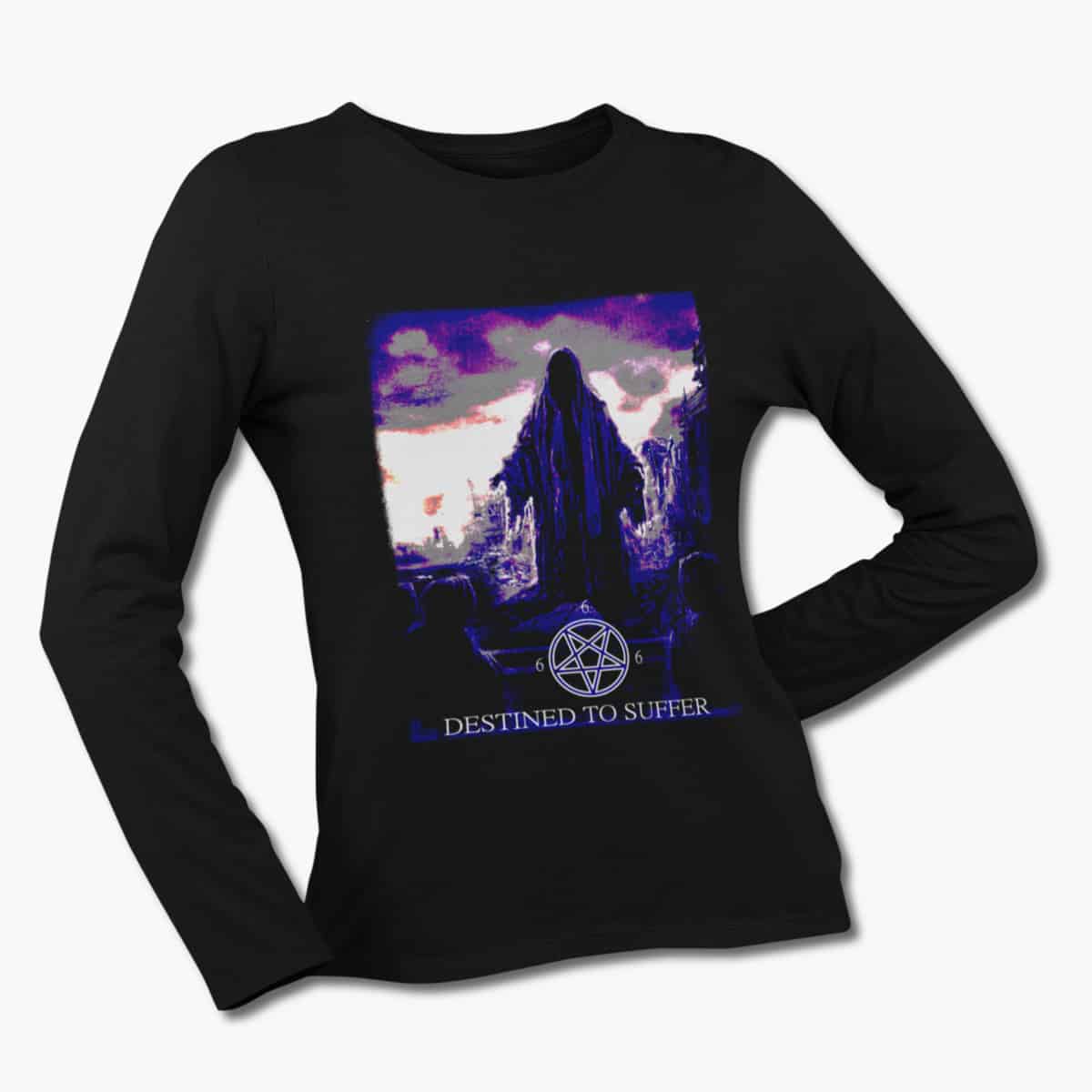 Destined to Suffer Band Long Sleeve T-Shirt, Destined to Suffer Artwork Black Longsleeve Tee Shirt, Black Metal Merchandise