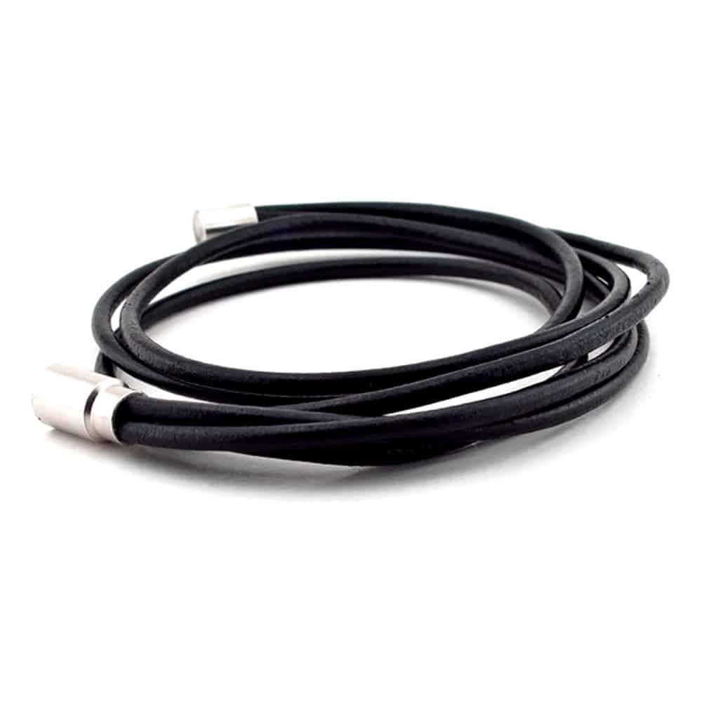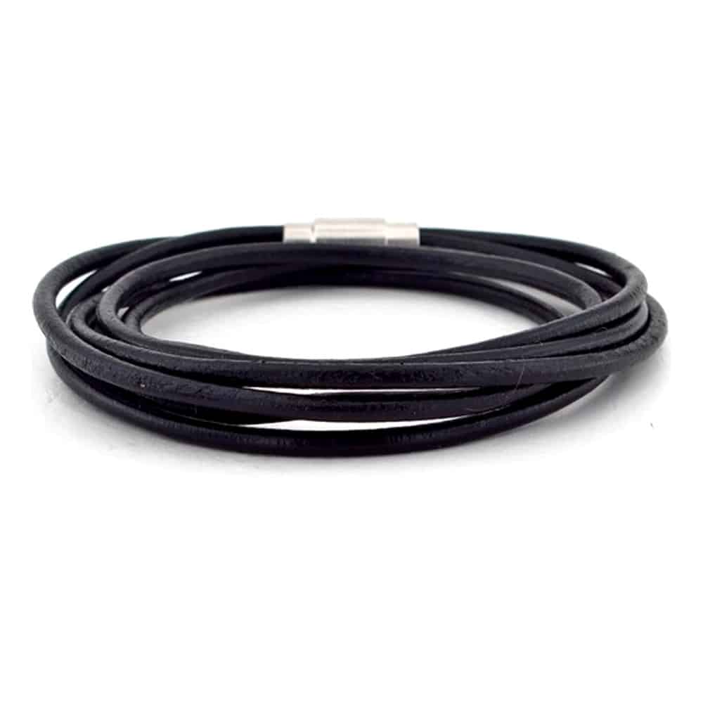 Double Row Wrap Black Color Leather Bracelet