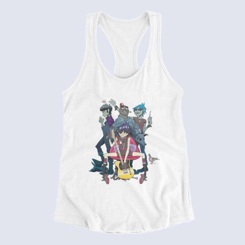 Gorillaz Tank Top, Gorillaz Band Artwork White Tank Top Shirt, Alternative Rock Merchandise