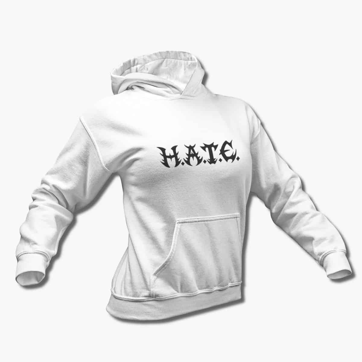 HATE Band Hoodie, H.A.T.E. Logo White Hooded Sweatshirt