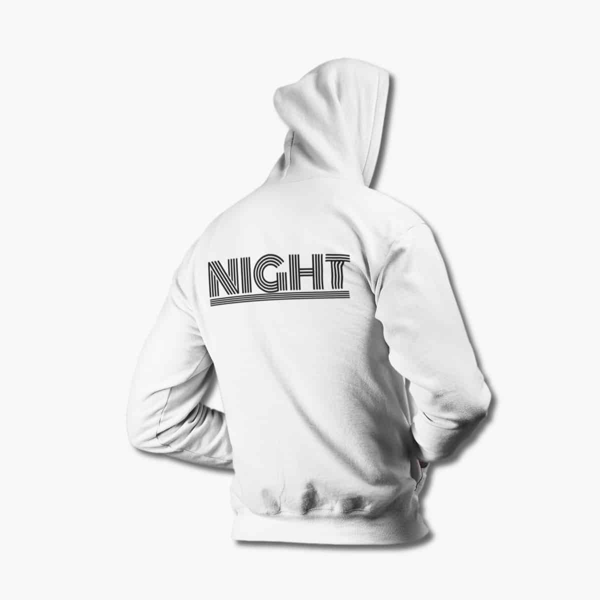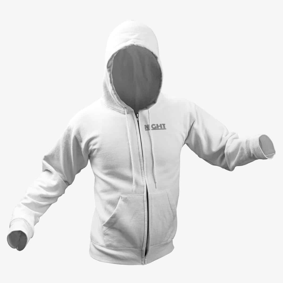 Night Zip Hoodie, Night Logo White Zipper Hoodie